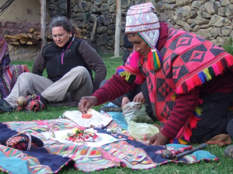 Die Sessions und der 2-Tages-Workshop werden in Quechua von den Paqos abgehalten, ins Englische von Luis übersetzt und von mir ins Deutsche.